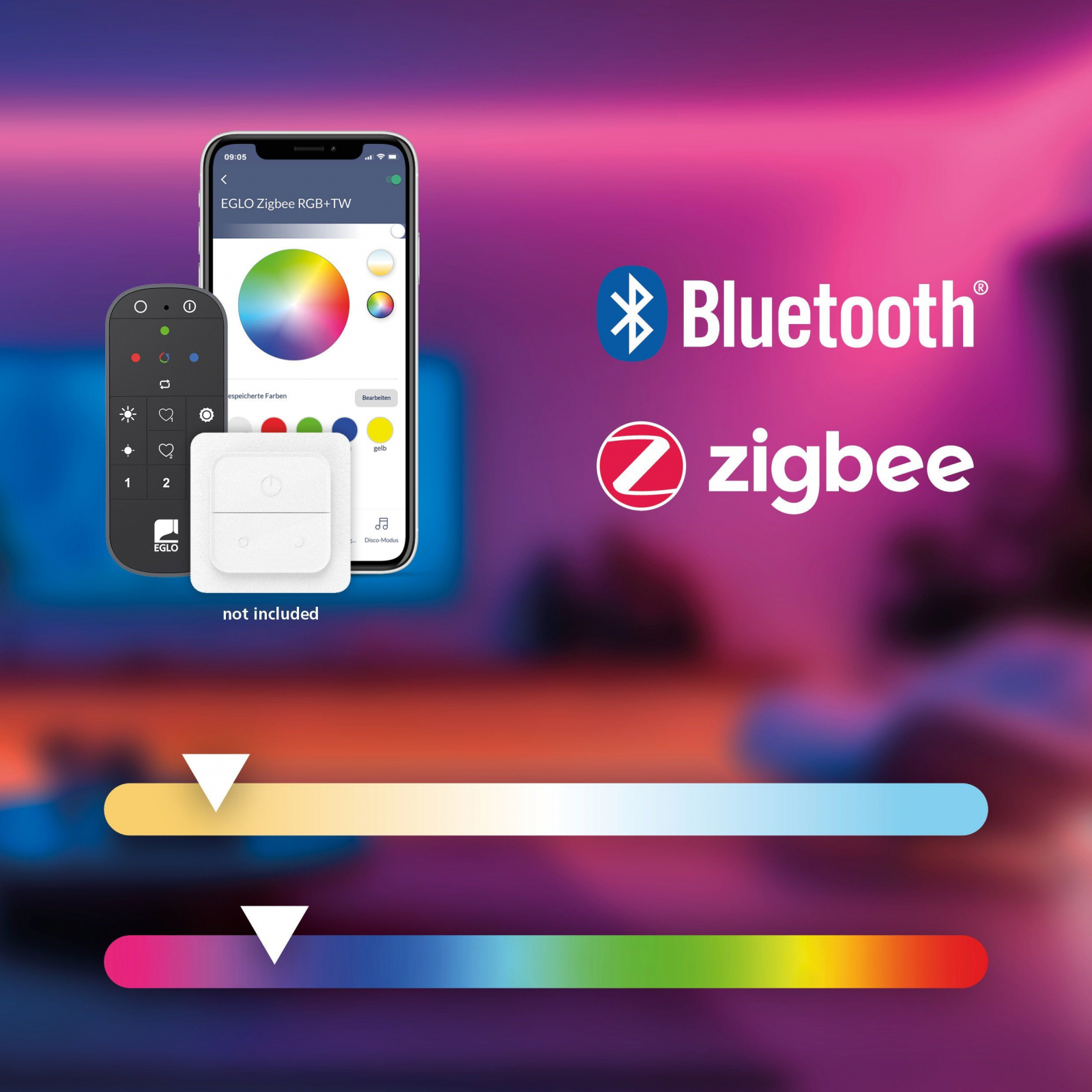 Functii: Control prin aplicatie smartphone, RGB, Modificare tip lumina ( calda, neutra, rece )