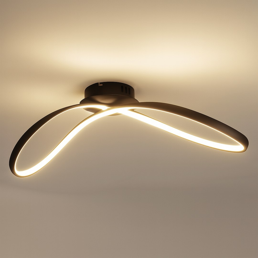 Forma sa sinuoasă și ondulată creează un efect vizual unic pe tavan — nu este o plafonieră obișnuită, ci un element decorativ cu caracter puternic.